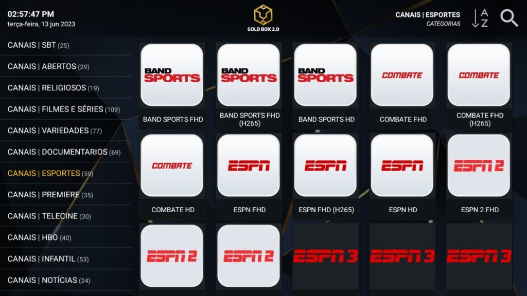 Tenha acesso a todos os canais ESPORTIVOS e assista os jogos do seu time do coração no conforto da sua casa. No GoldCard você conta com todos os canais esportivos, podendo assistir também, Basquete, Formula 1, UFC e muito mais…